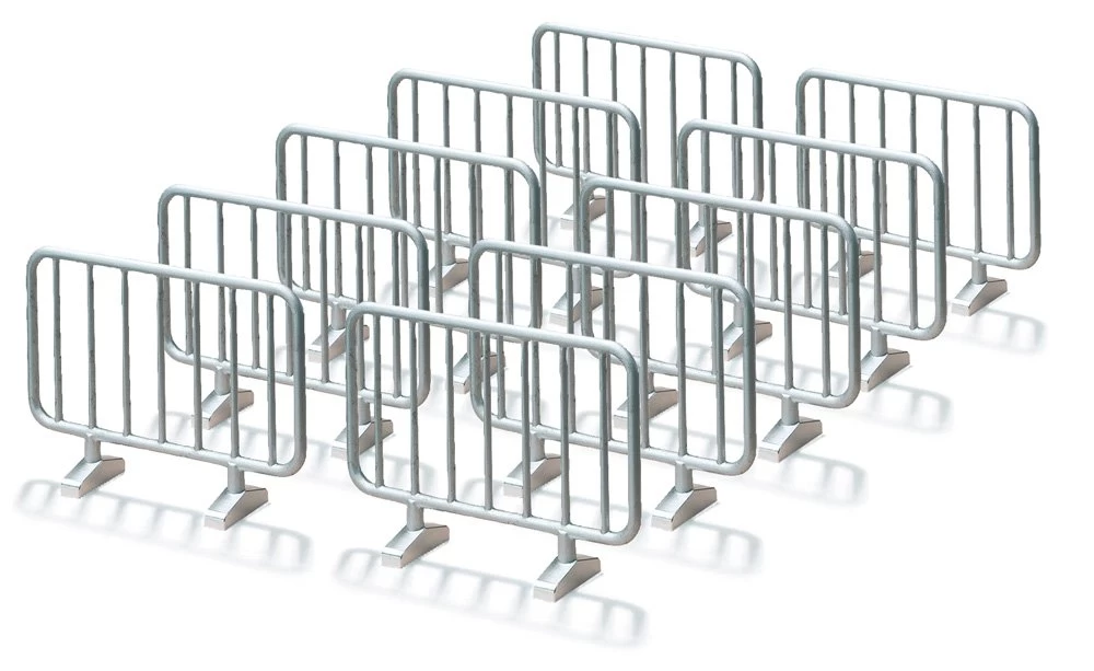 Zubehörartikel bestehend aus 10 Metall-Absperrgittern. Nutzbar einzeln oder im Zusammenspiel mit verschiedenen SIKU-Modellen der Farmer32-Serie.