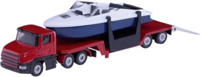 Siku Modellfahrzeug Tieflader mit abnehmbarem, schwimmfähigem Boot aus der Siku Super Serie.