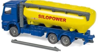 Erstmalig findet auf Basis des aktuellen Mercedes Arocs ein Futtermittel-Transporter den Weg in das SIKU-Sortiment. Die Futtermittelsilos der Marke „Spitzer“ werden auf einem 3-Achs-Fahrgestell als Zugmaschine und auf einem 2-Achs-Drehschemel Anhänger montiert. Schläuche zum be- und entladen sind abnehmbar.