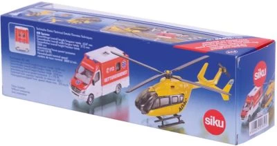 Set bestehend aus einem Mercedes-Sprinter Rettungswagen und einem Rettungshubschrauber der Marke Eurocopter EC 145.