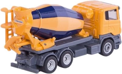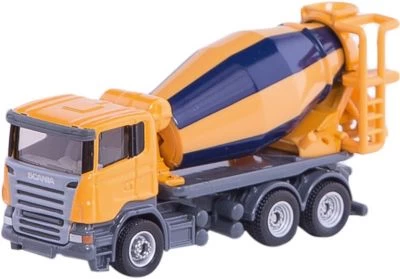 Transportbeton an die Baustelle zu bringen ist Aufgabe des Fahrmischers. Das 1:87 Modell mit Liebherr Aufbau auf einem 3-Achs-Fahrgestell mit Scania Fahrerhaus wird dieser Aufgabe mühelos gerecht. Die Trommel ist drehbar und mit einem markanten Streifendesign bedruckt. Als zusätzliche Spielfunktion ist der Aufbau kippbar.