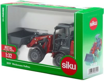 Diese kleine und wendige Radlader der Marke Weidemann gehört zur Standardausstattung mittlerer und größerer landwirtschaftlicher Betriebe. Durch das Knickgelenk meistert die Maschine auch enge Kurvenradien problemlos. Das realitätsnahe Arbeiten mit dem Modell ist möglich, da Ladearm und Schaufel durch Drehgelenke beweglich gestaltet wurden. Der offene Fahrerplatz ist, wie auch die gesamte im Maßstab 1:32 gehaltene Maschine, sehr detailliert gestaltet. Das weitgehend aus Metall gefertigte Modell rollt auch originalgetreuen Felgen mit grobstolligen Reifen aus gummiertem Material.