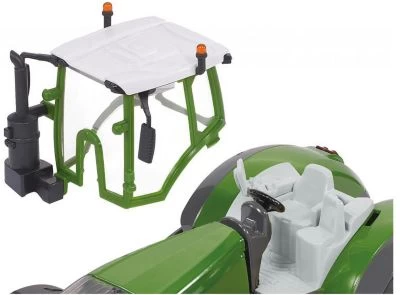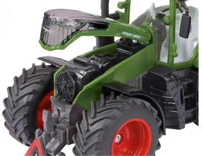 Der neue Fendt 1050 Vario ist von Fendt als German Meisterwerk bezeichnet worden. Nun zieht dieses im Spielzeugformat auch in das Kinderzimmer ein. Die gewaltigen Proportionen der Originalmaschine trifft das aus Metall- und Kunststoffteilen bestehende SIKU Modell optimal. Die neue Optik der Motorhaube mit dem grimmigen Blick ist ebenso herausgearbeitet, wie die neuen Hinterreifen in neuer Dimension. Die lenkbare Vorderachse verfügt über eine Pendelfunktion. Die wuchtige Motorhaube ist zum Öffnen und die Kabine abnehmbar. An Front und Heck sind SIKU-Standardkupplungen eingesetzt.