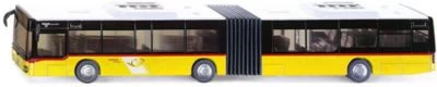 Sehr aufwändiges und großes Bus Modell des Original Vorbildes MAN Lions City in der Variante als Gelenkbus. Die Räder besitzen gummierte Laufflächen auf 3-Achsen, wobei die zweite und dritte Achse zwillingsbereift sind. Die Türen an der rechten Fahrzeugseite sind zum Öffnen. Motorklappe im Heck ist zu öffnen. Getönte Scheiben. Die separaten Rückspiegel und der einzeln eingesetzte Kühlergrill sind weitere bestechende Feinheiten. Die Leuchten vorne und hinten bestehen aus Kunststoff. Der Dachaufbau besitzt die typischen Klimaanlagen.