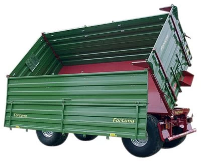 Der Anhänger hat ein Datenkabel, dass mit dem Traktor verbunden wird und somit auch den Strom bezieht. Die Mulde des Anhängers ist elektronisch sowohl nach rechts als auch nach links kippbar. Hierzu kann das bereits vorhandene Fernsteuermodul genutzt werden. Im Heckbereich des Anhängers sorgen rote und orangene LED´s für Rücklicht und Blinker.