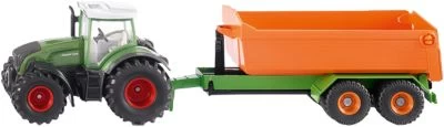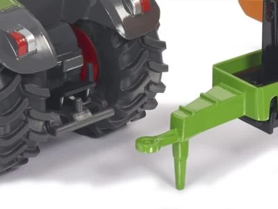 So sehen vorbildgerechte Landmaschinengespanne aus: Der bärenstarke Fendt Traktor zieht das farbintensive Hakenlift-Fahrgestell mit niedriger Baustoffmulde ins Programm des Farmer-Maßstabs 1:50. Der bullige Traktor verfügt über eine Anhängerkupplung an Front- und Heck sowie über ein abnehmbares Dach. Die Mulde kann originalgetreu vom Fahrgestell abgelassen und heraufgezogen werden. Die Mulde ist bau-typisch hinten offen gestaltet.