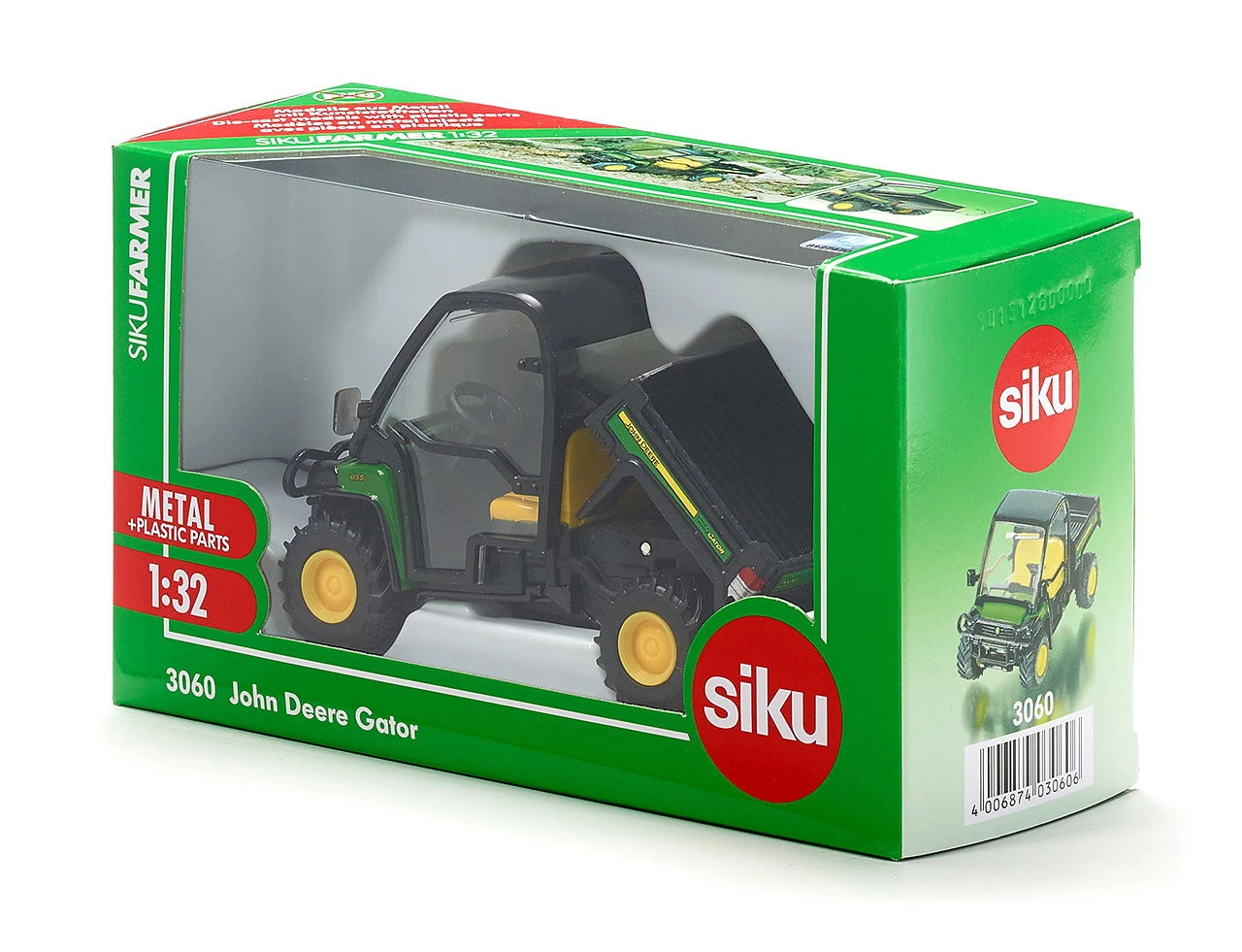 Der John Deere Gator ist des Landwirts kleiner Liebling! Der Allrounder fühlt sich in jedem Gelände zu Hause und eignet sich für vielfältigste Anforderungen auf dem SIKU-Bauernhof der 1:32-Farmer-Welt. SIKU legt Wert auf ein fein detailliertes Modell, das angesichts seiner ansprechenden Maßstabsdimension für wirklichen Modellspaß sorgt. Die filigrane Kabine lässt sich öffnen, die kompakte Ladefläche am Heck ist nach hinten abkippbar. Neben feinstem, vorbildgerechtem Bedruckungskomfort überzeugt der John Deere Gator durch seine originalgetreuen Felgen mit Reifen aus gummiertem Material. Das wendige Allzweckgerät ergänzt das 1:32-Sortiment durch einen wirklichen Hofspezialisten, der europaweit immer größere Verbreitung verzeichnet.