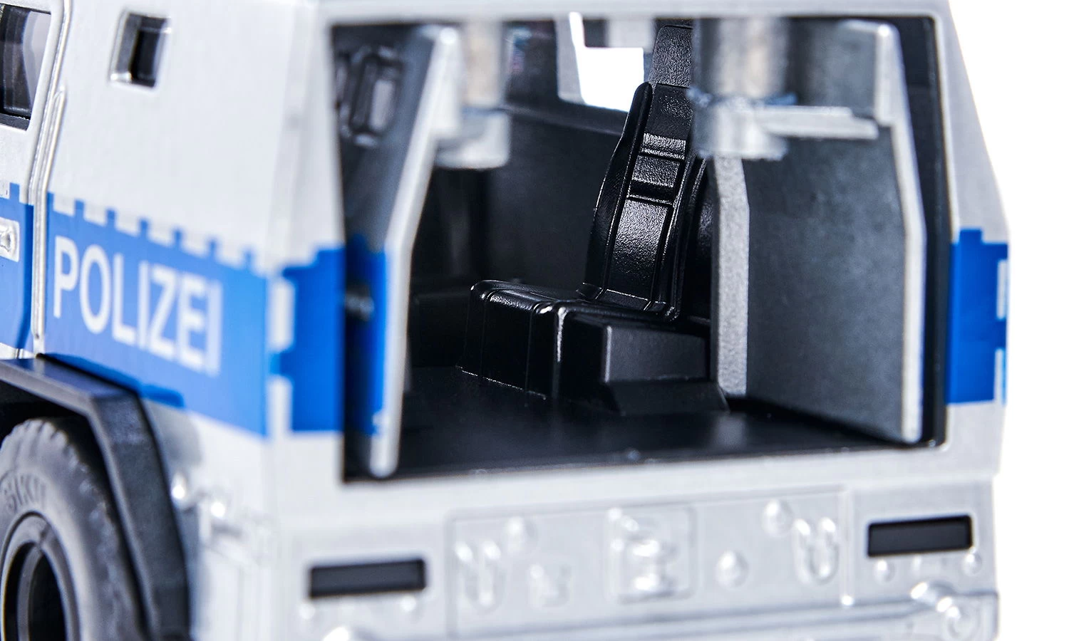 Einsatzfahrzeug für Spezialkräfte – Der Name ist Programm. Der Rheinmetall Survivor R transportiert Spezialkräfte an den Einsatzort. Bis zu elf Personen finden in dem gepanzerten Fahrzeug auf Lkw-Basis mit Ausrüstung Platz. Die Insassen sind mit einer speziellen Belüftungsanlage gegen Kampfstoffe geschützt. Der nächste Einsatz steht an. Die Türen und die Heckklappe lassen sich öffnen.