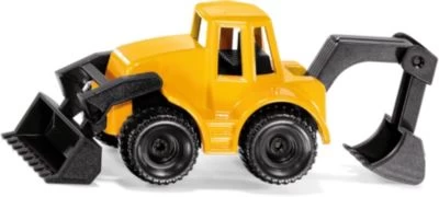 Der SIKU Baggerlader ist das Multitalent auf der Baustelle! Er vereint zwei Baumaschinen in einer: vorne Radlader mit großer Schaufel, hinten Bagger mit einer schmalen Schaufel. Damit wird ordentlich was weggeschafft. Der Frontlader und die Baggerschaufel lassen sich nach oben und unten bewegen.