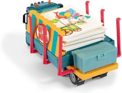 Was kommt denn da auf dem Lastwagen angefahren? Wow! Es ist ein Haus! Mit diesem coolen Spieleset „Fertighaus-Transporter“ von SIKU kommen die Einzelteile eines Fertighauses auf der Spezialpritsche des Transporters angefahren. Jetzt müssen nur noch die Warnbaken aufgestellt werden und das Haus ist bereit zum Abladen. Und das Tollste: Das Haus kann auch im zusammengebauten Zustand auf der Pritsche transportiert werden. Mit den beiliegenden Aufklebern lässt sich das Haus sogar ganz individuell gestalten.